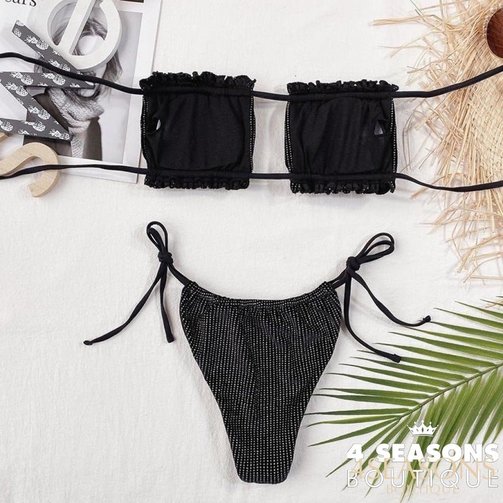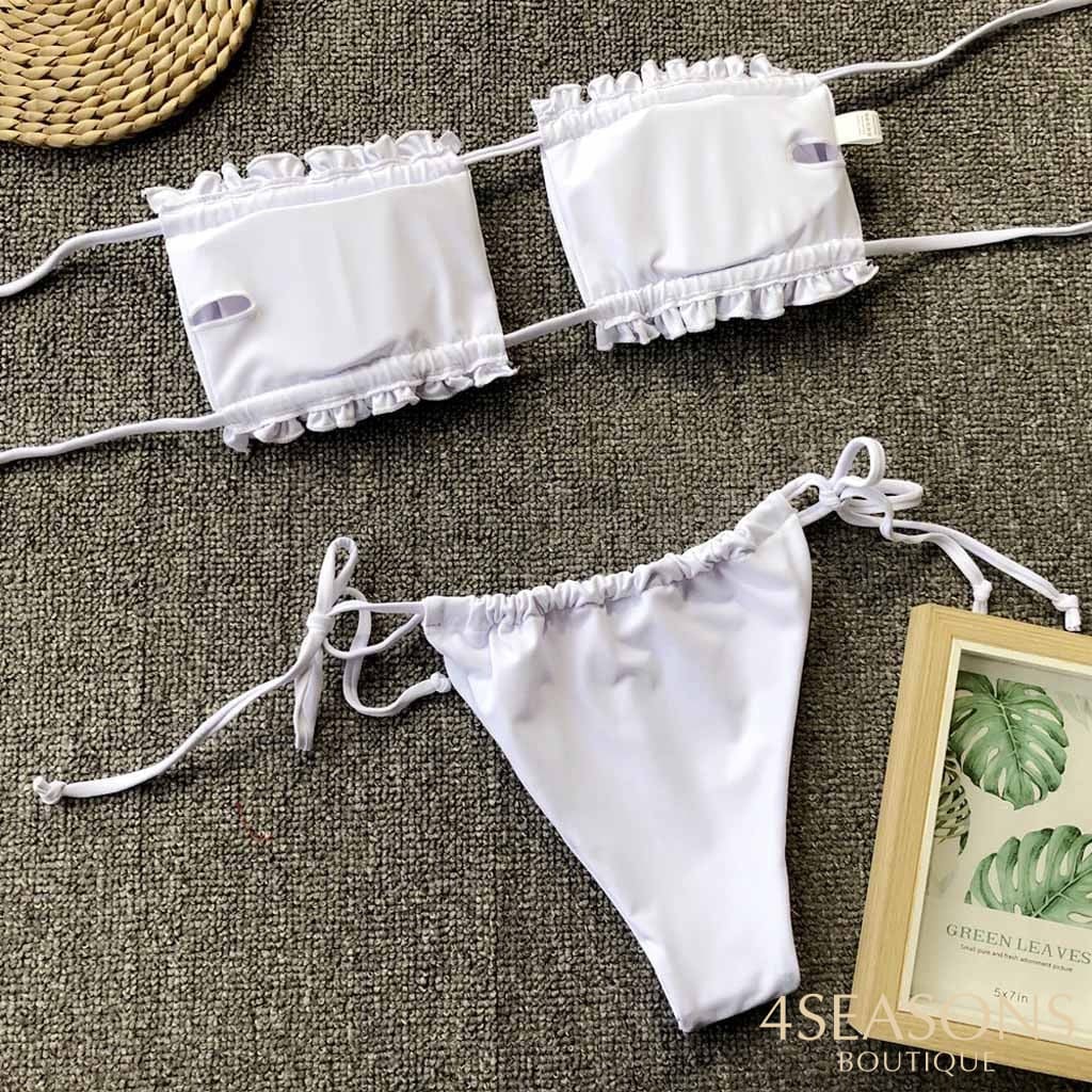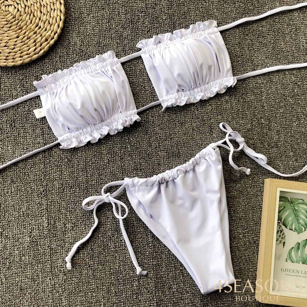 Biquíni disponível em preto, branco, amarelo, azul, laranja, rosa, verde menta, verde, cor preto (veludo e lurex) e vermelho;