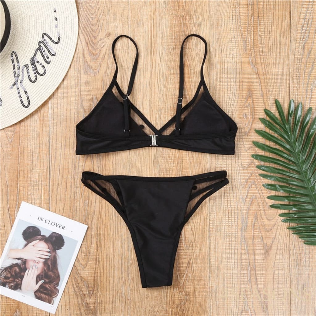 Biquíni elegante de alta qualidade, cintura média, com renda transparente proporcionando sutileza e estilo;
