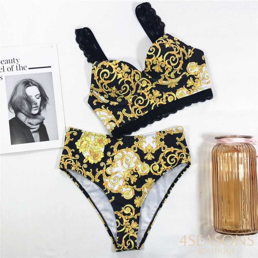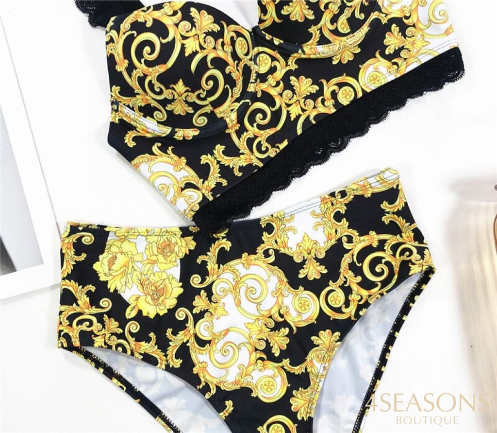 Biquíni push up com estampa paisley de cintura alta, disponível em uma cor.