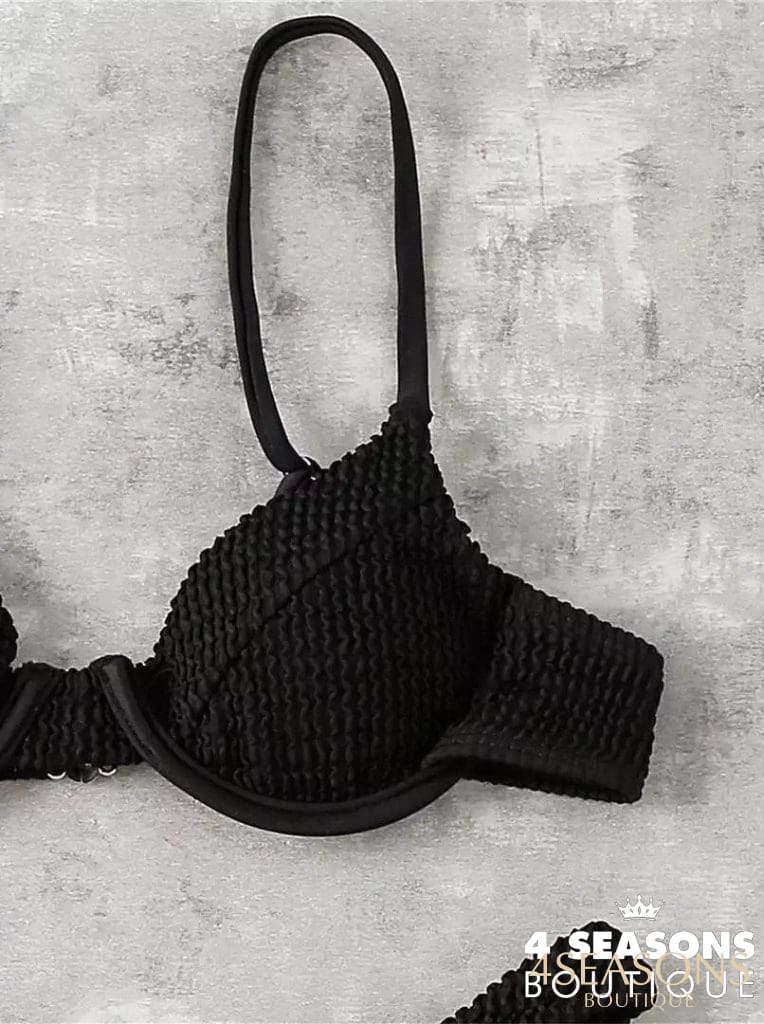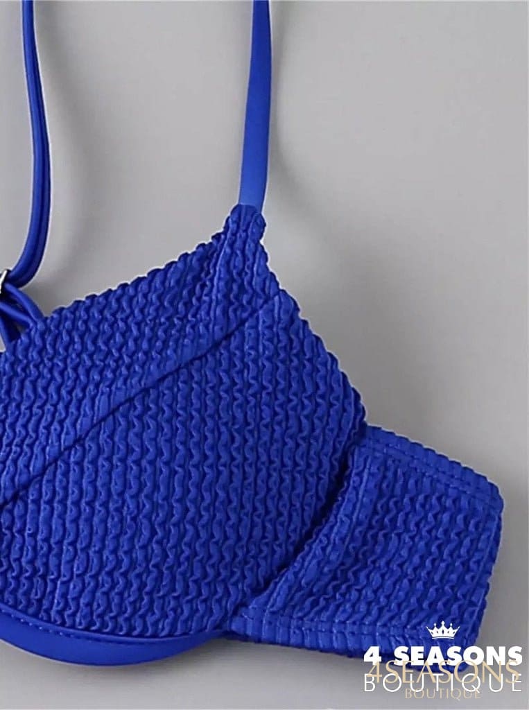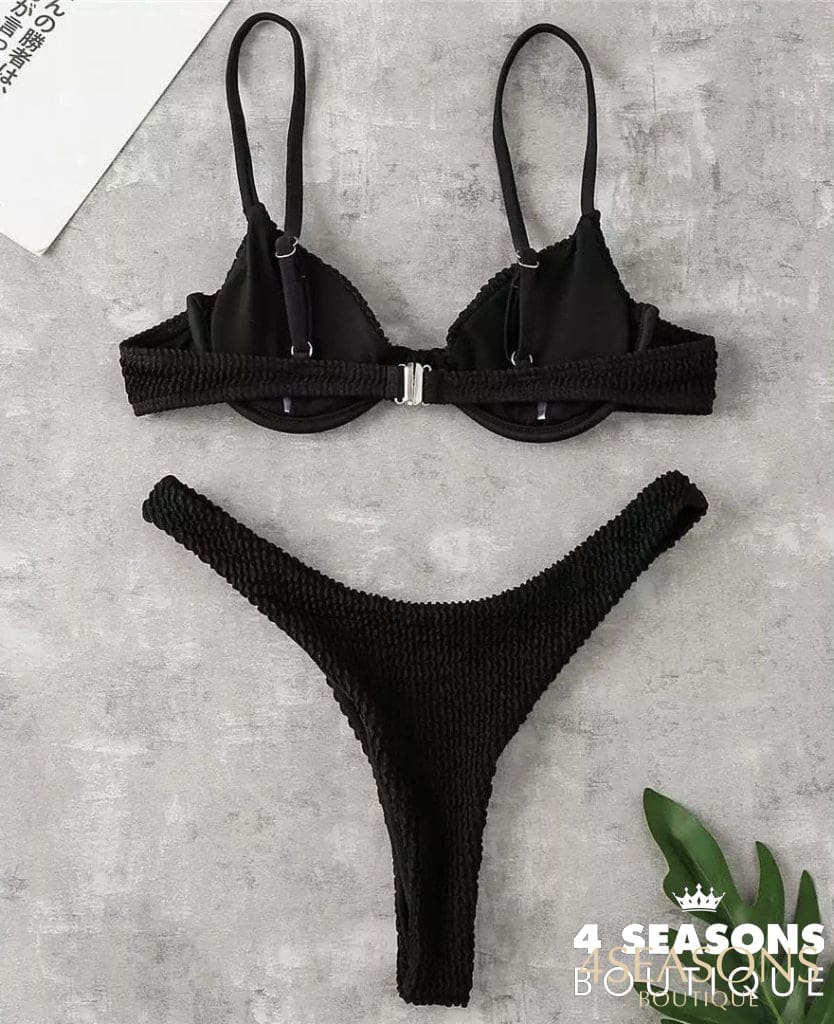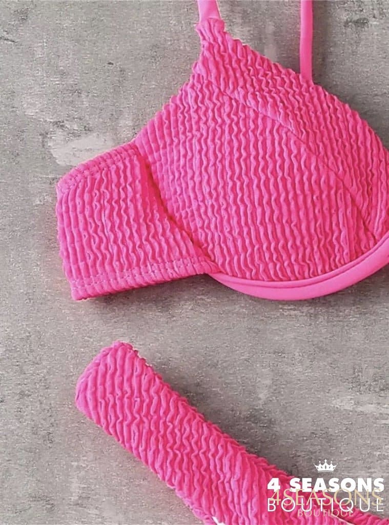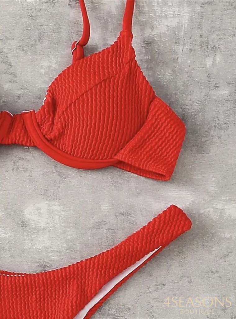 Biquíni texturizado disponível nas cores preto, branco, azul royal, rosa e vermelho;