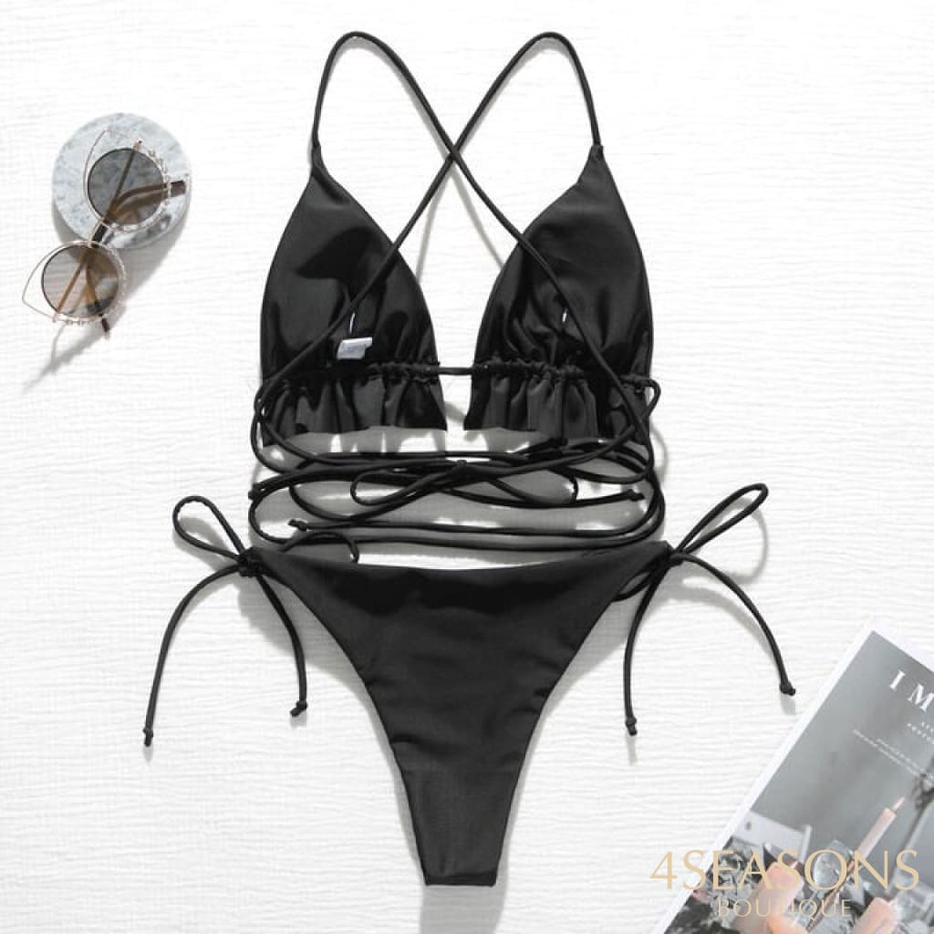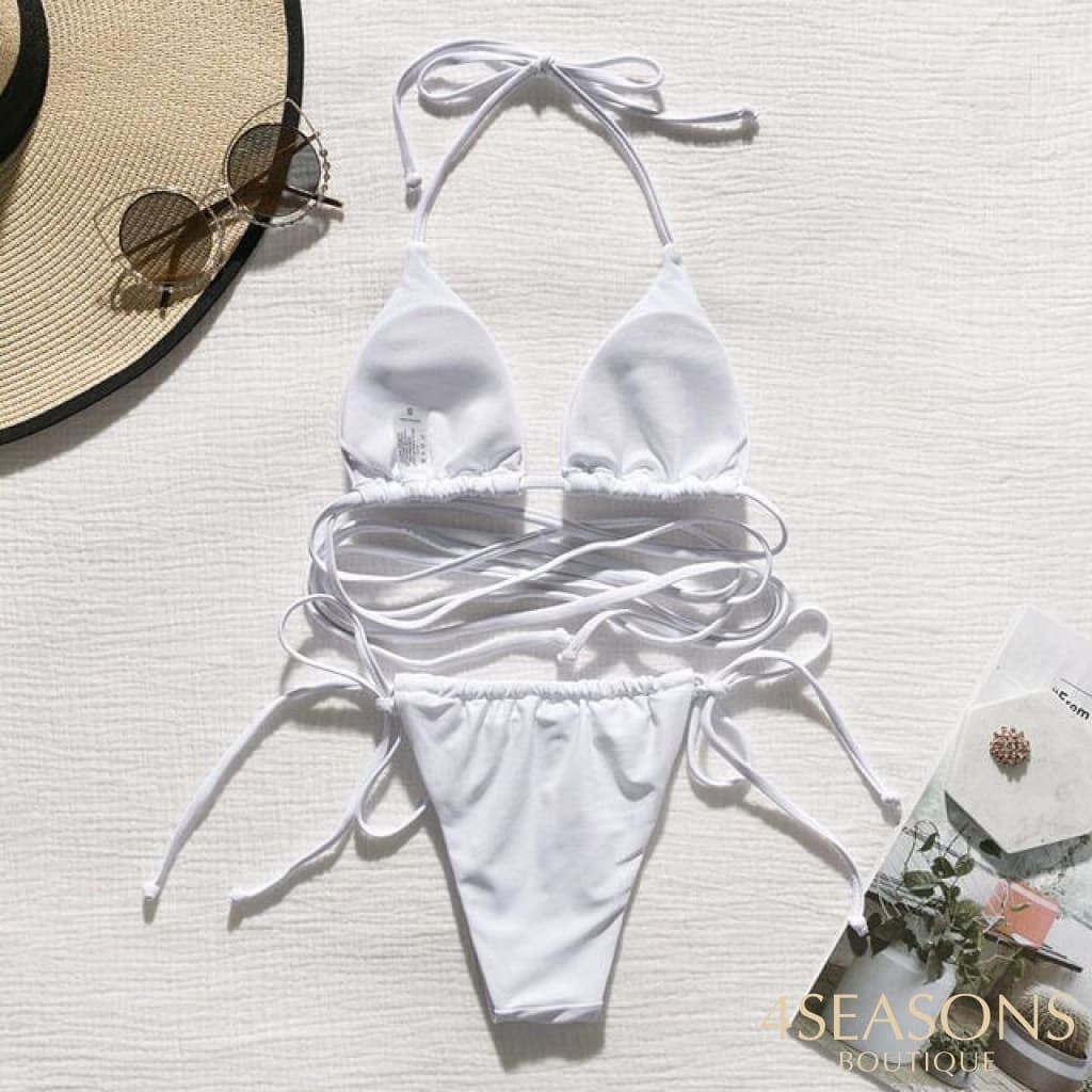Biquíni com bandagem disponível nas cores preto, branco e nude;