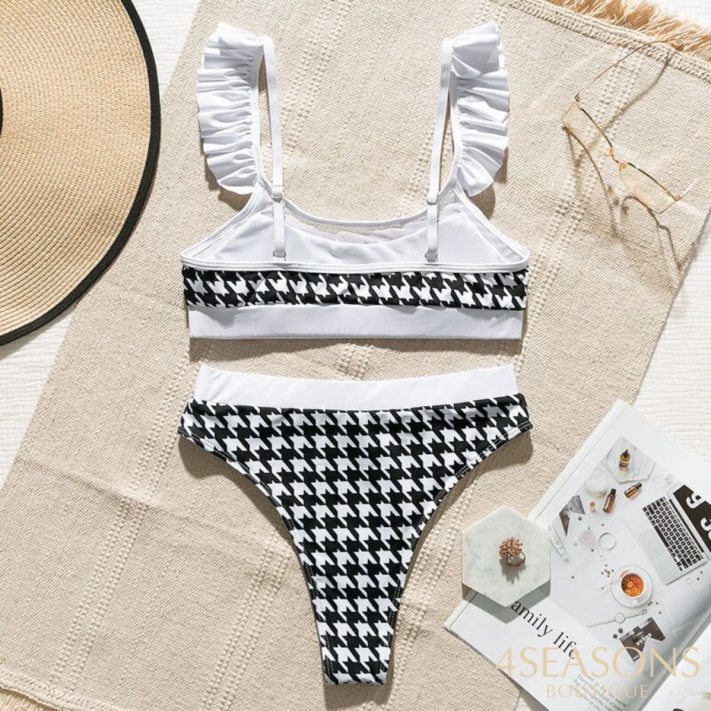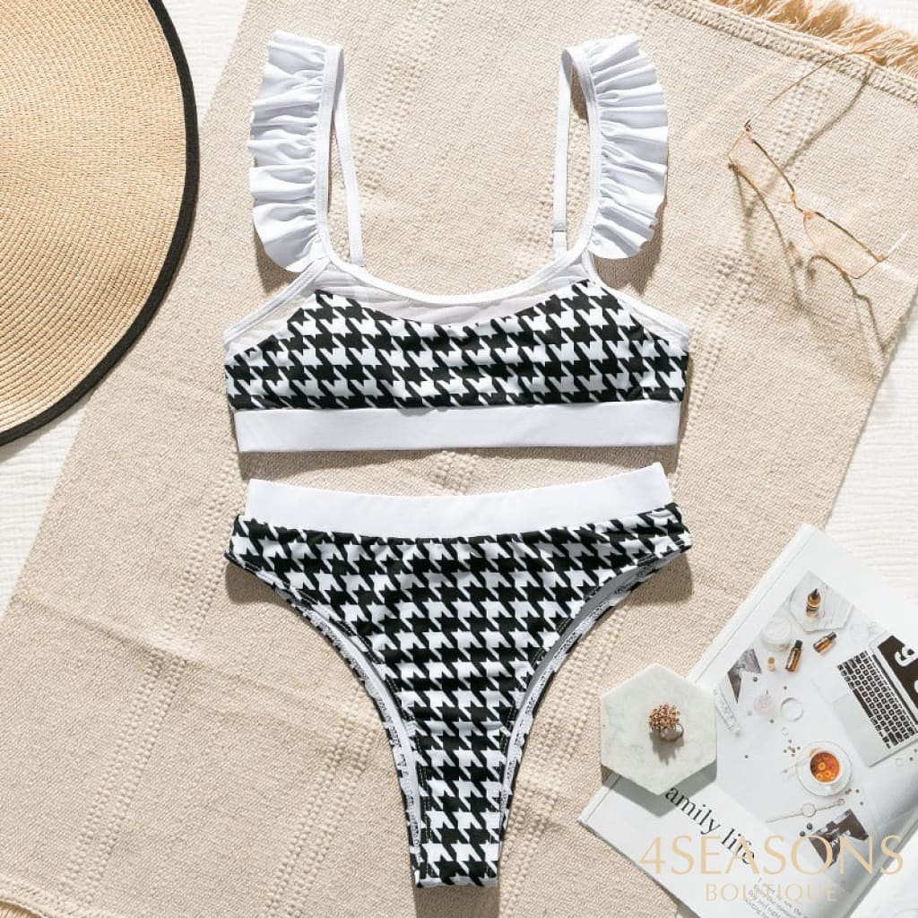 Biquíni de cintura alta estampado. Peça com bojo. Biquíni em material poliéster, encaixa perfeitamente no corpo.