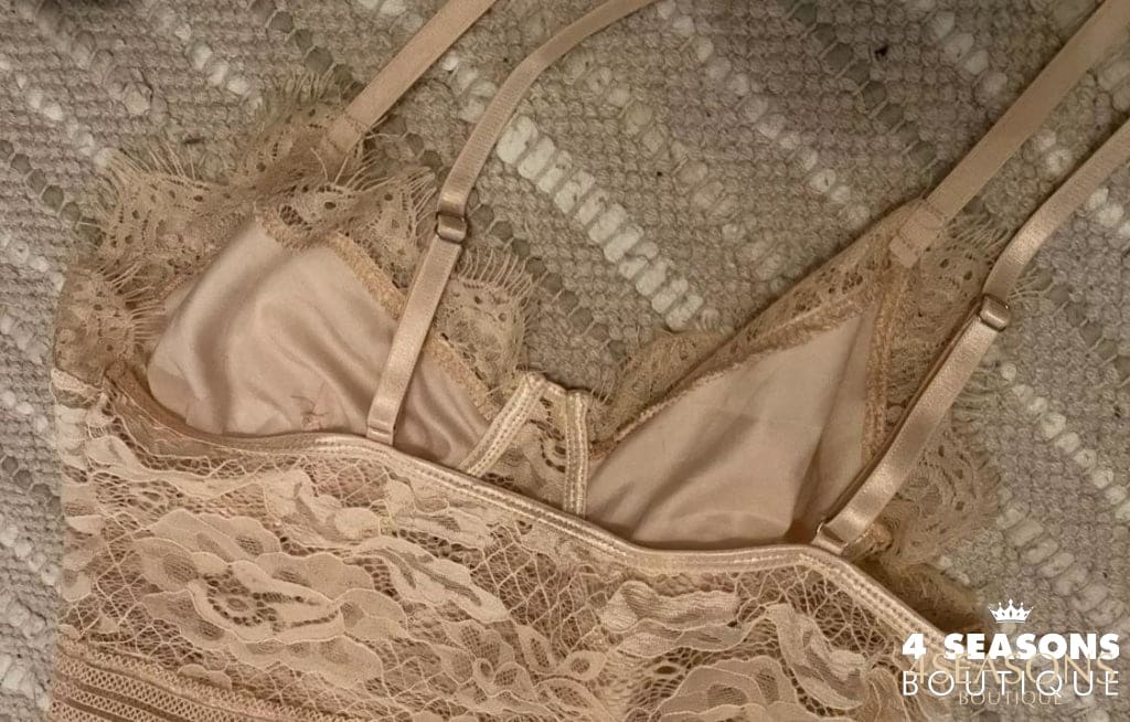 Sem forro no corpo, dando efeito de leve transparência da renda sobre a pele;