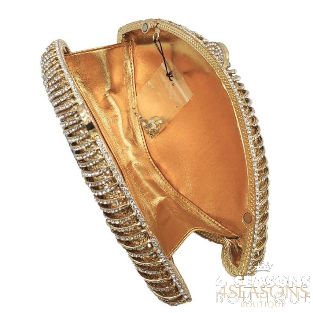 Bolsa de cristais dourados e prata exclusiva e sofisticada no estilo Clutche;
