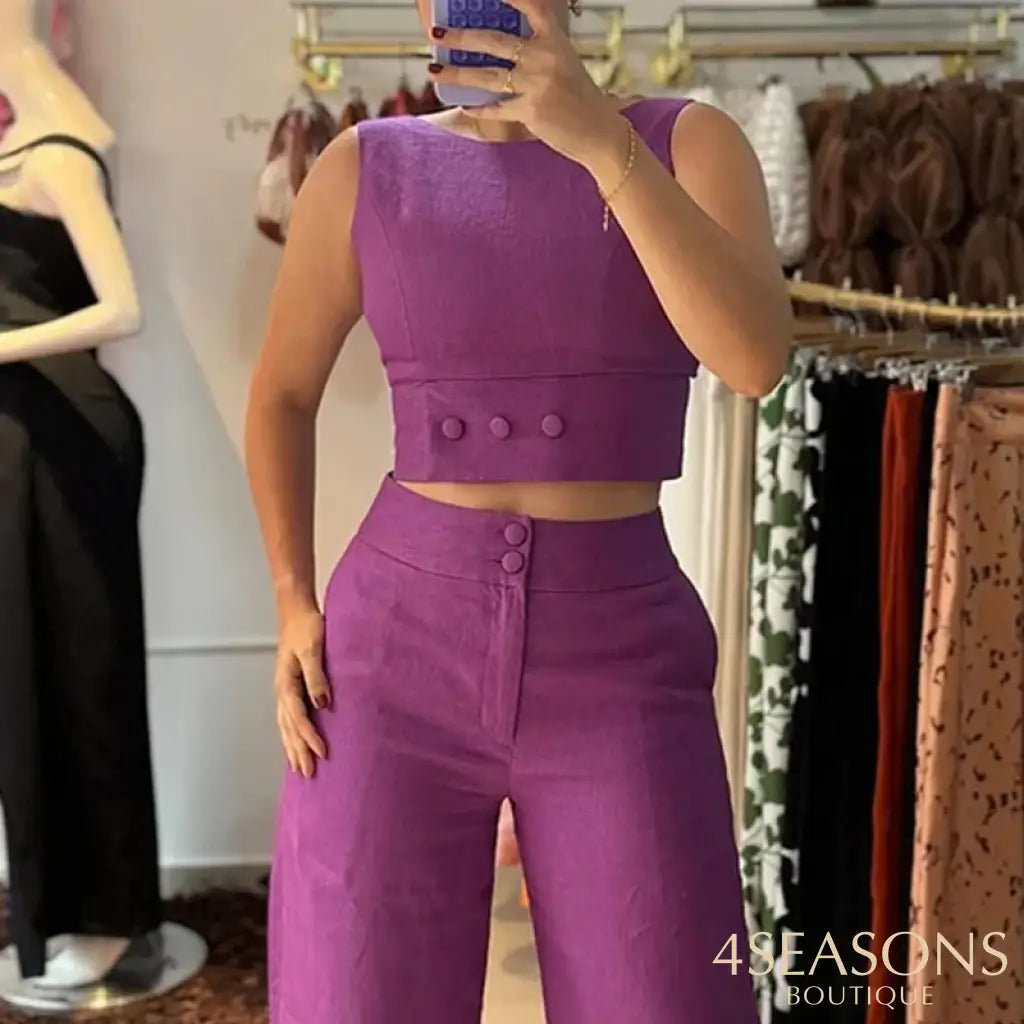 - Estilo da calça : Pantalona com bolsos