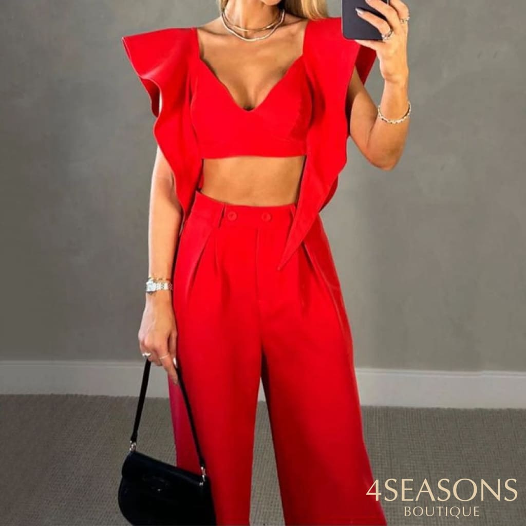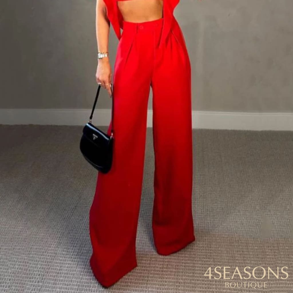 - Detalhes: Calça pantalona bom bolsos e botões encapados