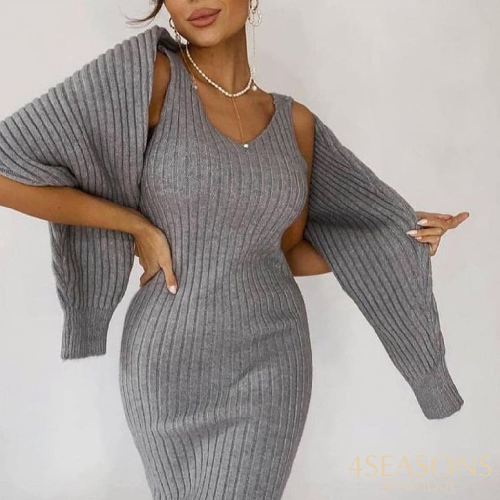 - Conjunto com vestido midi,canelado