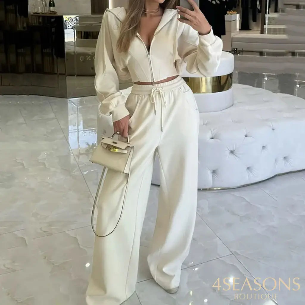 Conjunto : Blusa meia estação/inverno com zíper regulável e elástico no pulso, Calça Pantalona com bolsos e elástico na cintura