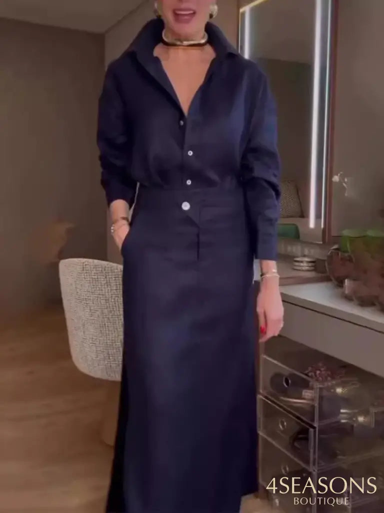 - Estilo da saia : longa com 3 fendas, bolsos e botões