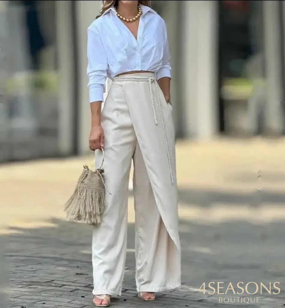 - Calça Pantalona transpassada com bolsos, inclui ''cintinho'' em corda