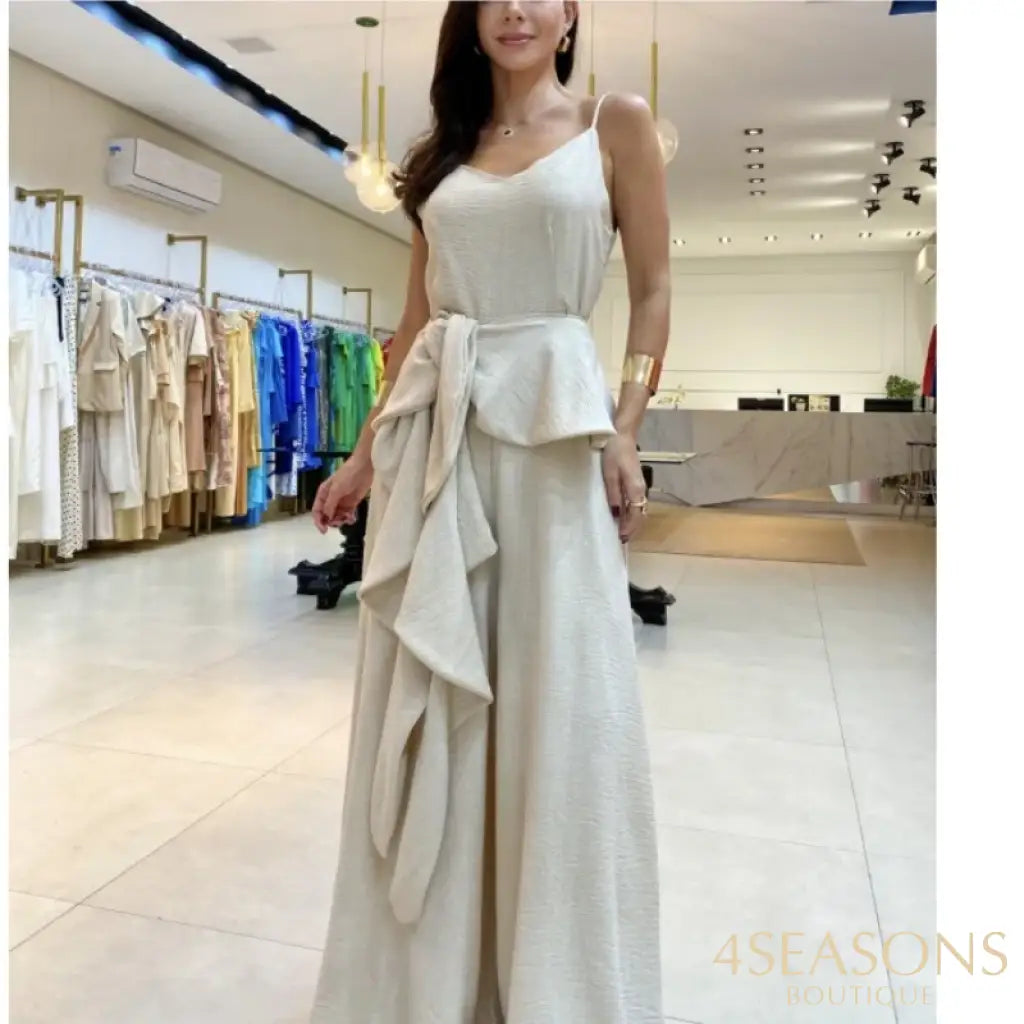 - Macacão Pantalona com faixa que pode ser usada de várias formas