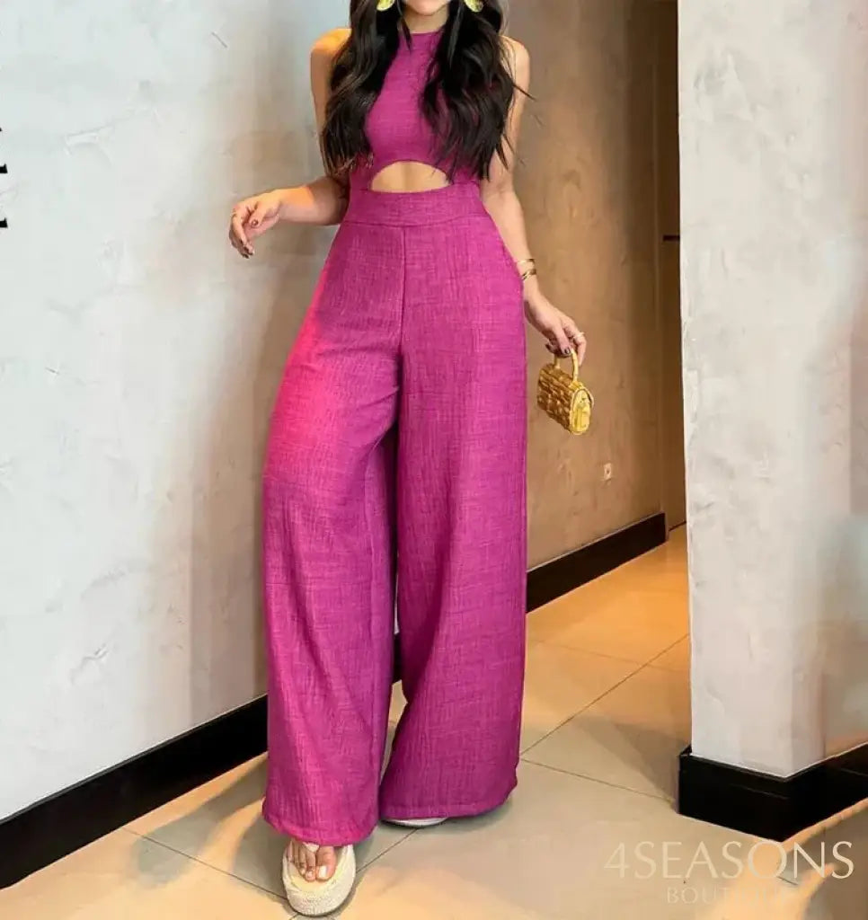 - Macacão pantalona com bolsos e recorte estratégico na cintura