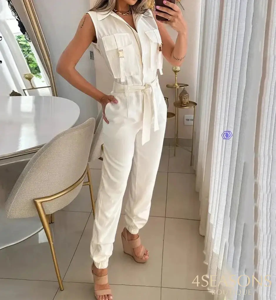 - Macacão Cargo com bolsos e amarração na cintura e elástico na barra