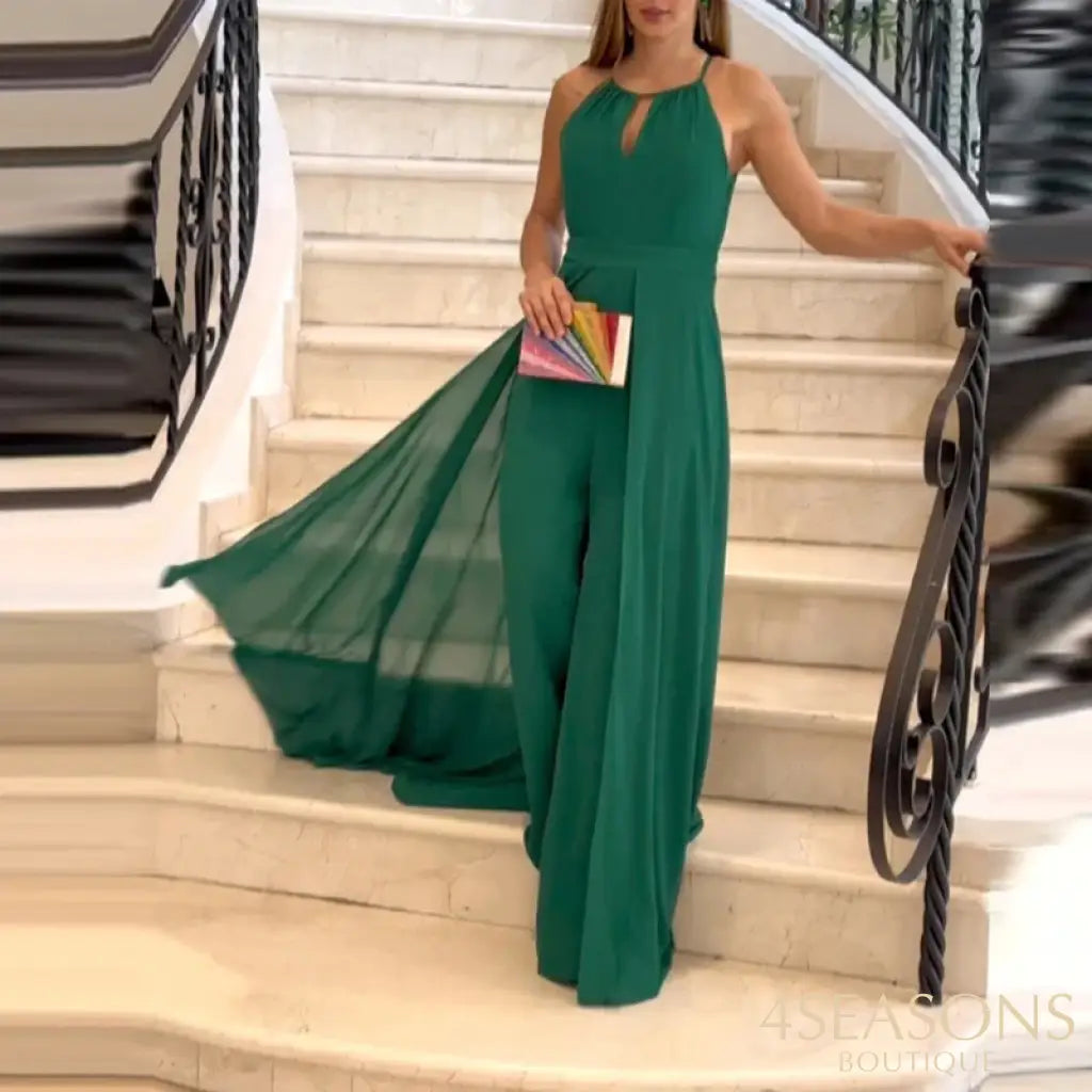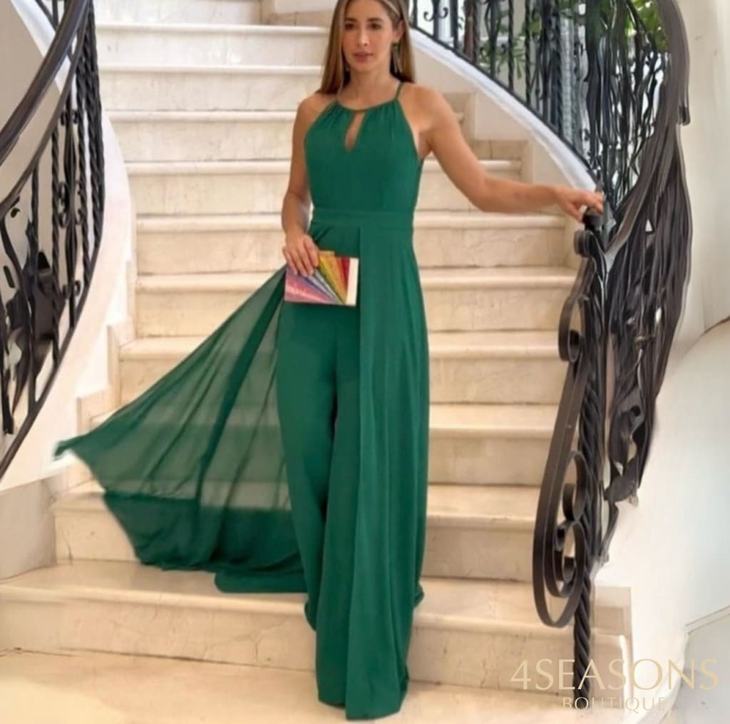 - Estilo do macacão : Pantalona elegante, costas semi abertas
