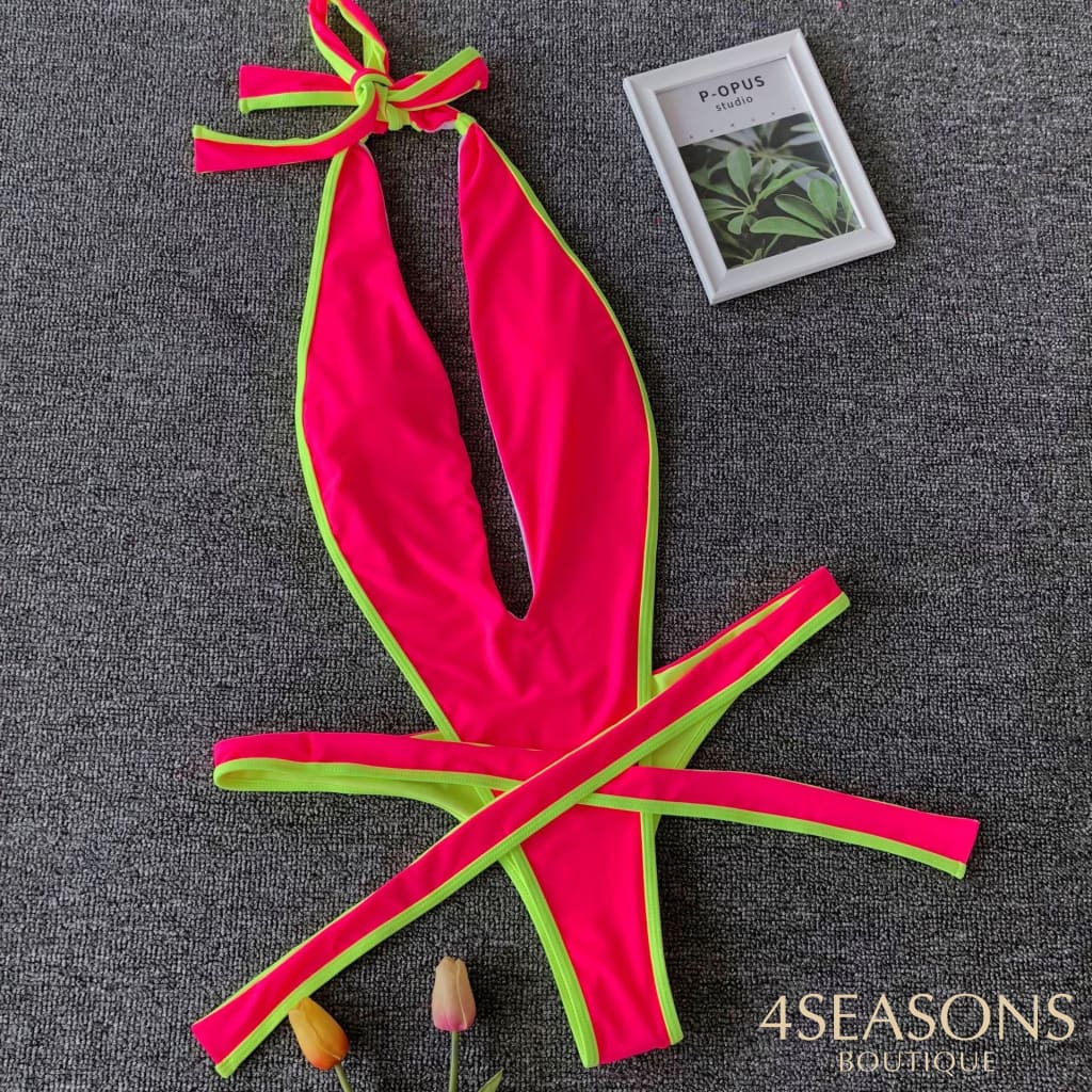 Fato de banho de uma peça, com sutiã acolchoado e parte inferior tanga. Disponível em várias cores. Fabricado em elastano e poliéster para maior conforto.