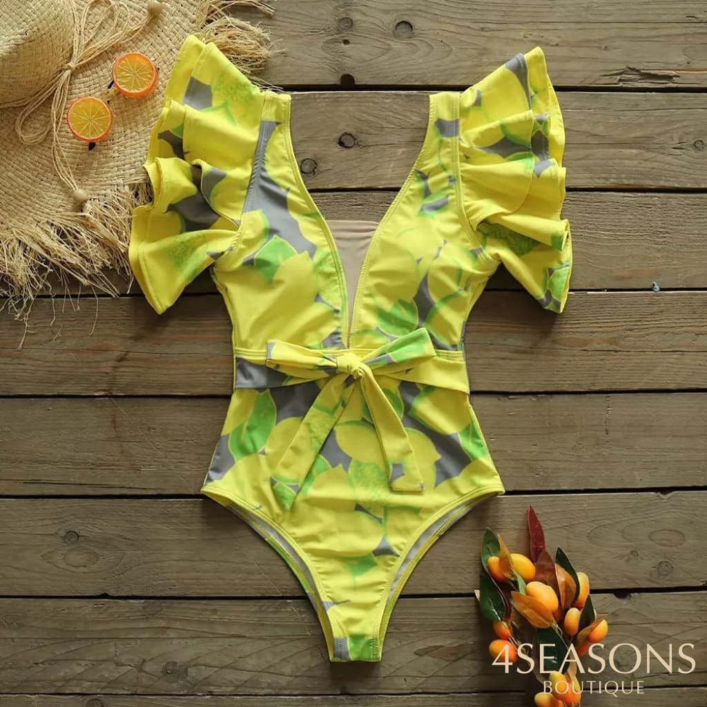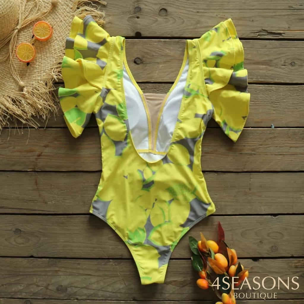 Body estampado amarelo;