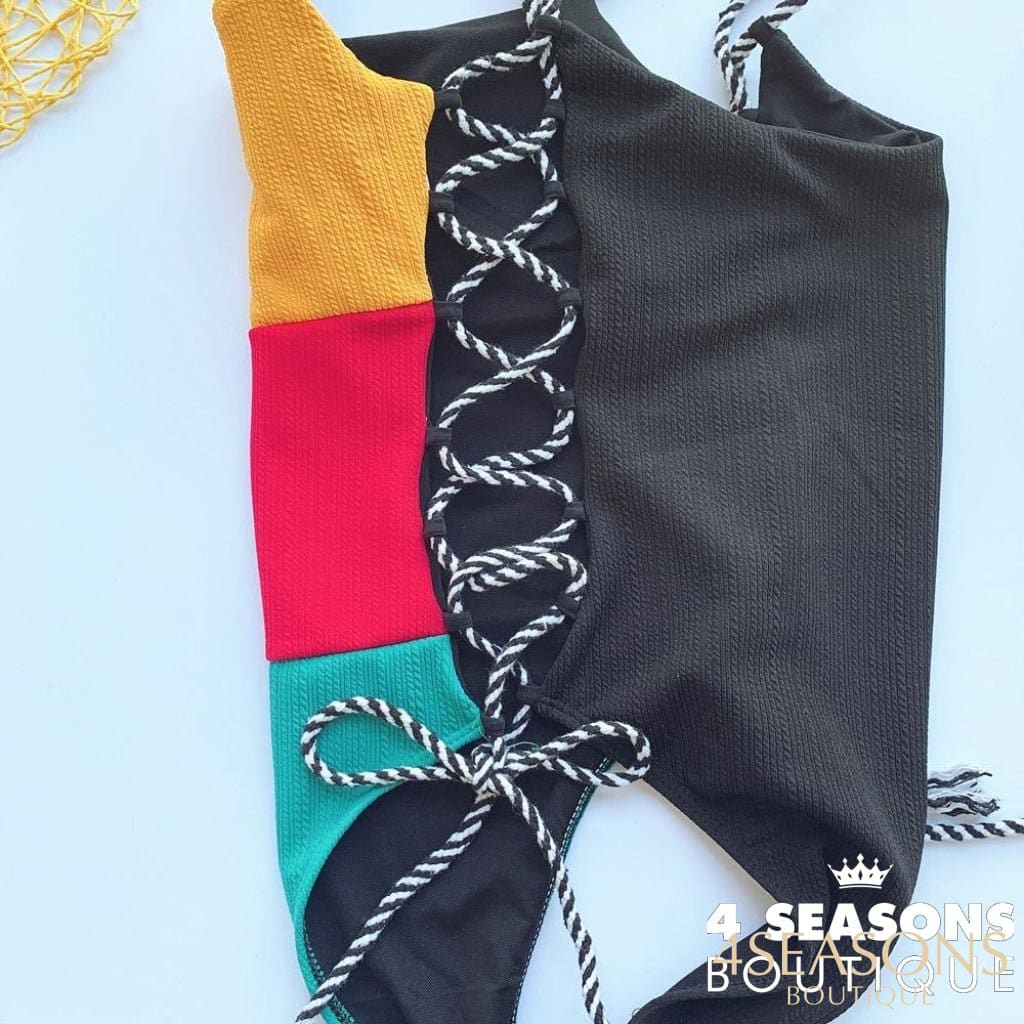 Lindo maiô com cordas ajustaveis na lateral. Disponivel somente em uma estampa.
