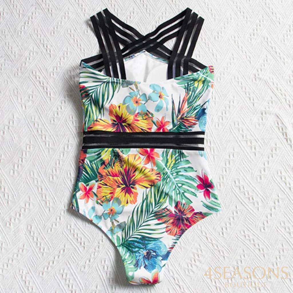 Detalhe frontal cruzado em alça com transparência. Possui bojo;