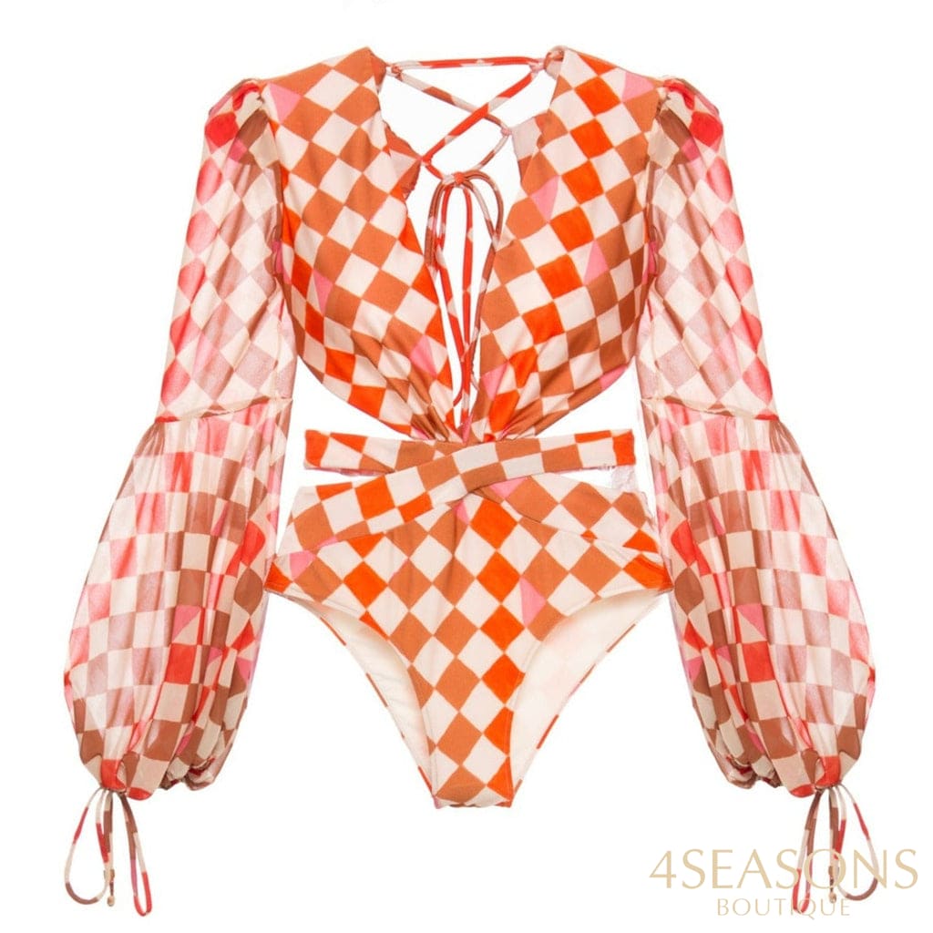 Maiô com manga longa, em estilo clássico único. Possui bojo removível, disponível em várias estampas e cores. Detalhe na cintura para modelar a silhueta. Confeccionado com poliéster para maior conforto e durabilidade.
