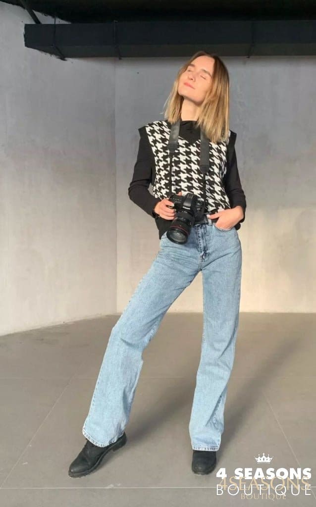 Colete Pied Poule Xadrez Preto