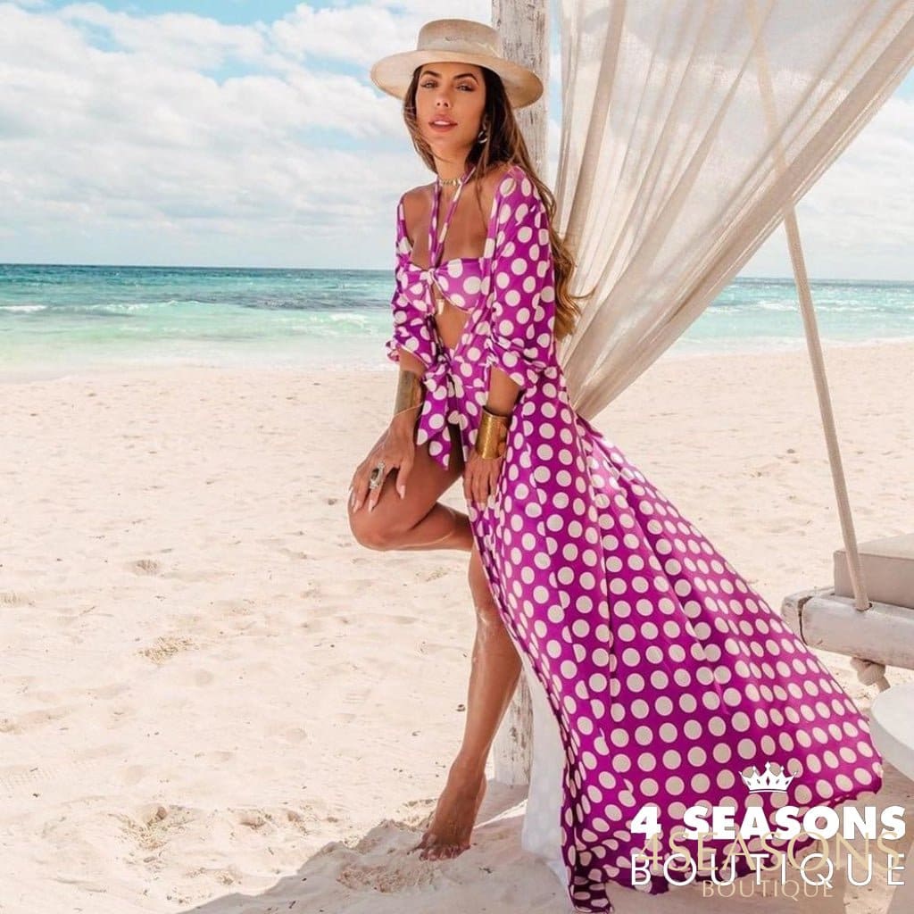 Peça estampada, longa proporcionando toda sofisticação desejada;