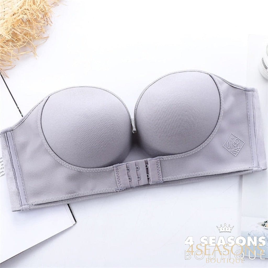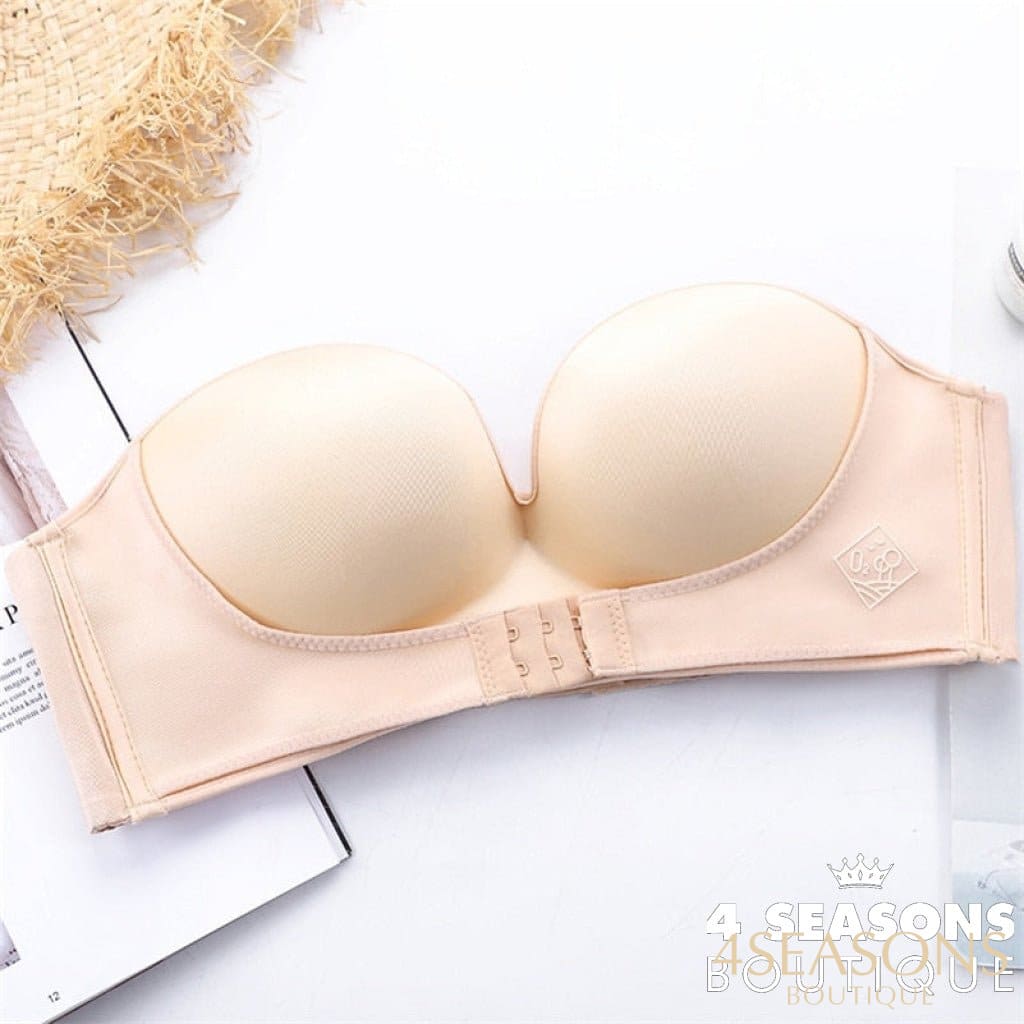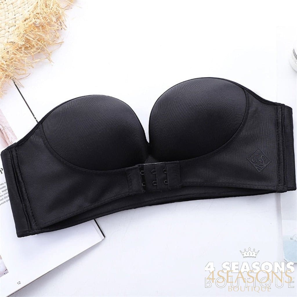 Sutiã sem alças e sem fechos nas costas para maior conforto e sofisticação;