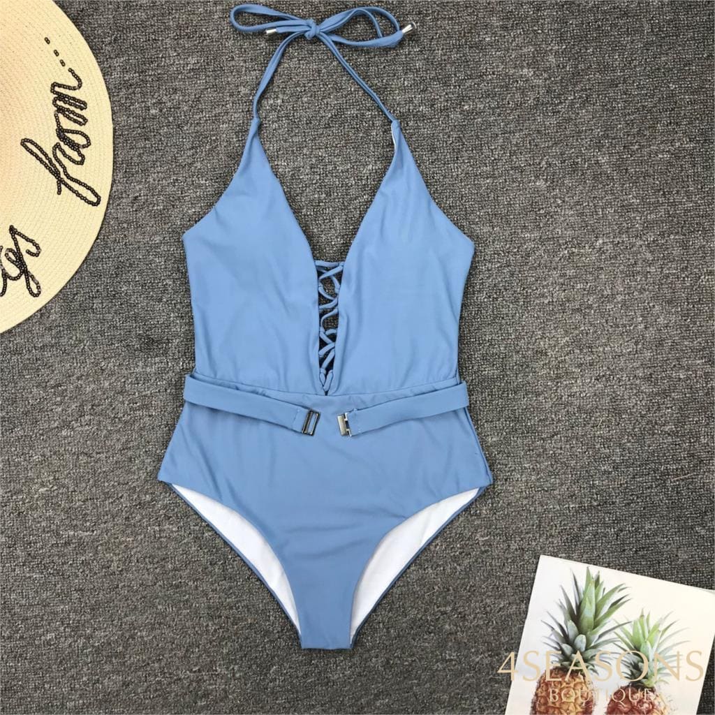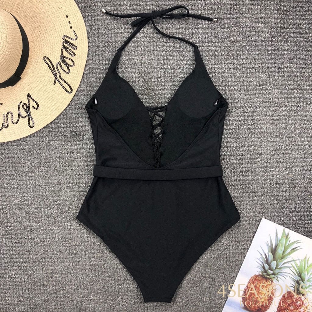 Maiô Estampado Glamour One Piece, disponível em várias cores. Detalhe para modelar cintura e costas expostas, detalhes em V no colo.