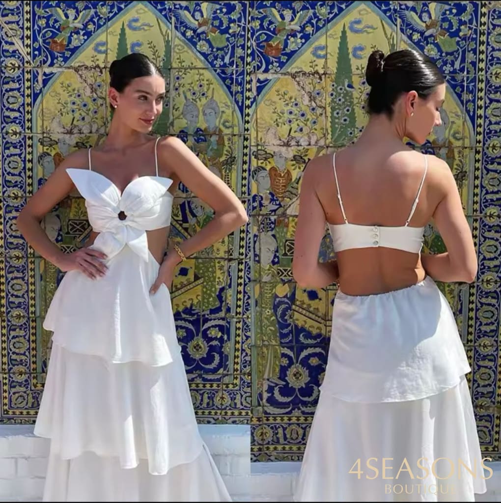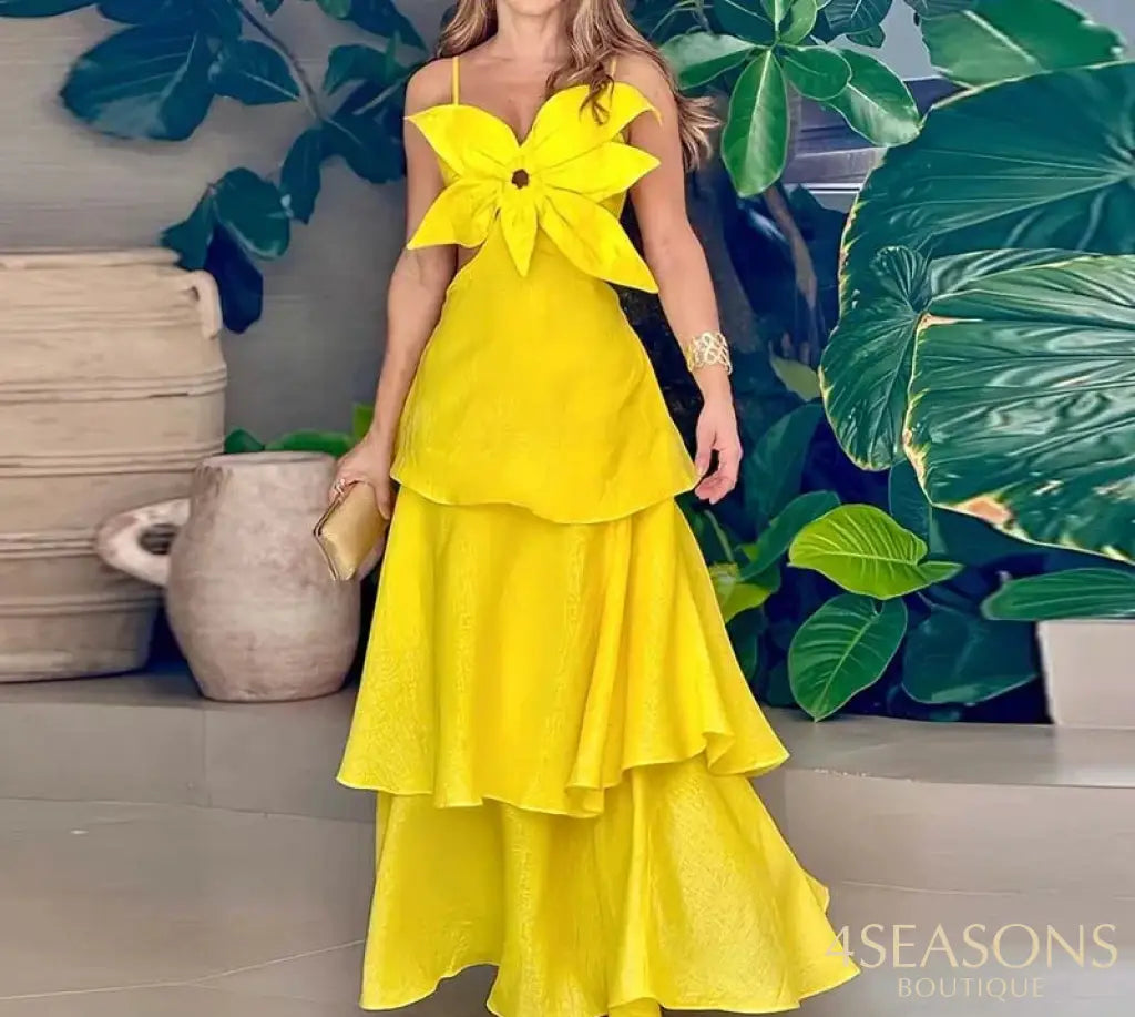 Detalhe : Vestido com Babados e aplicação de flor no busto