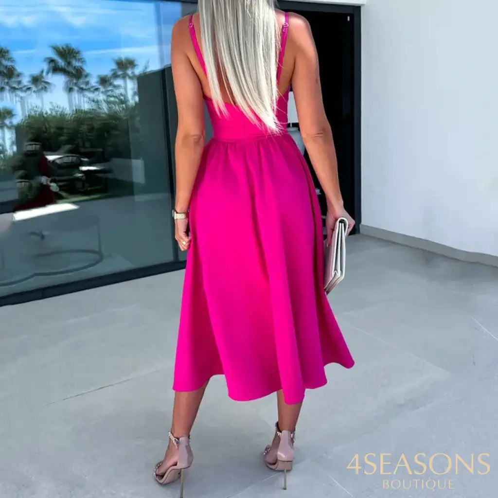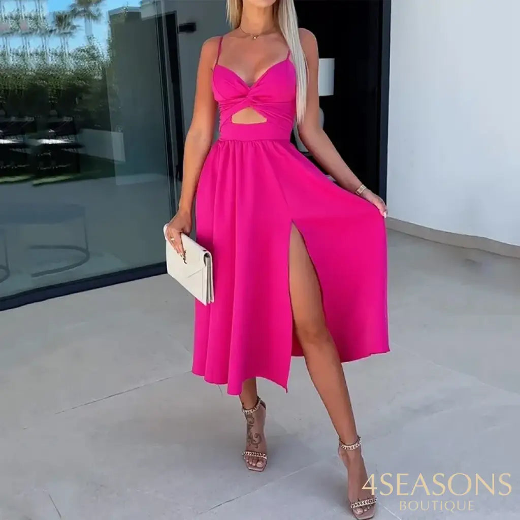 - Estilo do vestido : Midi plissado com fenda