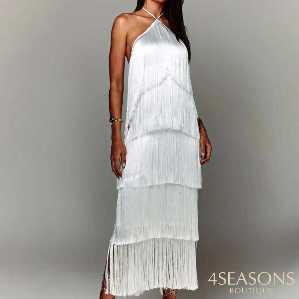 - Estilo do vestido : Longo em camadas de franja, forrado