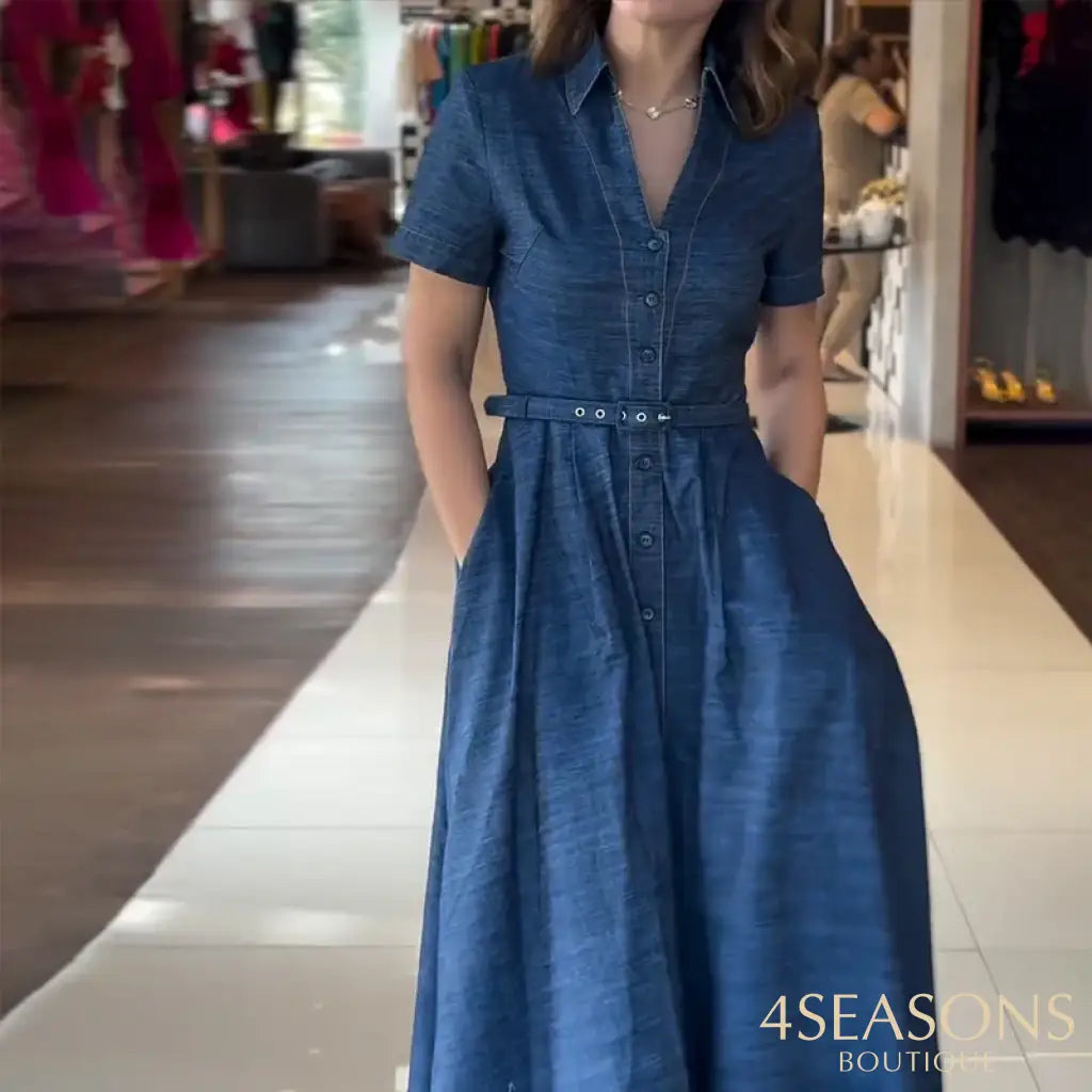 Detalhe : Vestido Midi com bolsos e cinto incluso