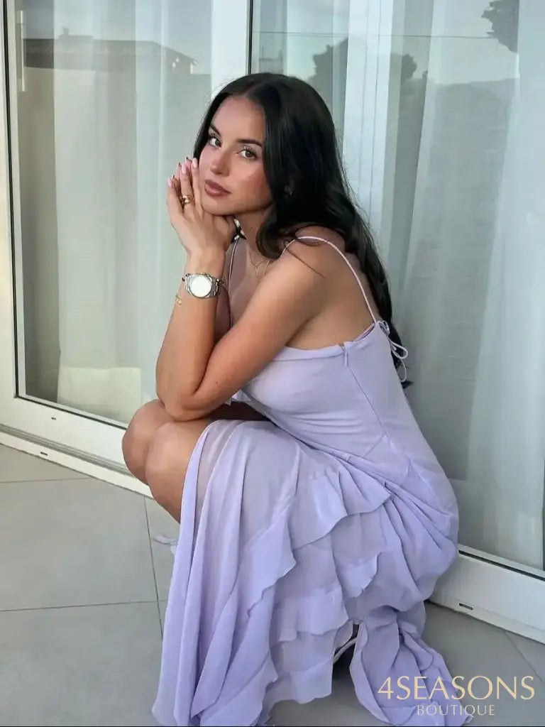 - Estilo do Vestido : Longo com fenda e babados em aplicação