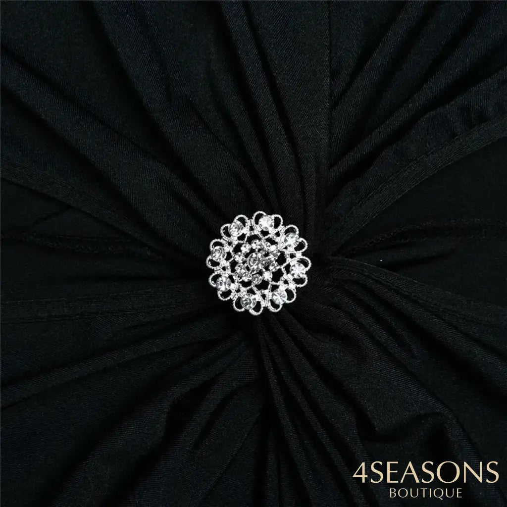 - Detalhe : Gola alta, zíper invisível para fechamento da peça e broche na cintura